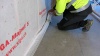 Tätning av utfack med SIGA Fentrim 20 50/85. Lufttäta anslutningar mellan utfack och bjälklag är en förutsättning för ett fuktsäkert byggande.
